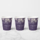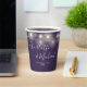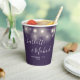 Elegant purple wedding paper cup featuring pretty string lights, signature style names and your special wedding date. Designed by Thisisnotme©
