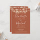 Featuring pretty string lights and signature style names, this elegant terracotta wedding invitation can be personalised with all your special wedding day information on the reverse, including your RSVP, accommodation, and additional details. Designed by Thisisnotme©