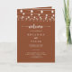 This string lights terracotta folded wedding program is perfect for a classic wedding. The design features beautiful hand-painted string lights in a terracotta background.