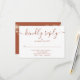 An elegant modern terracotta signature script RSVP card with your details set in chic typography and pretty string lights on the reverse. Designed by Thisisnotme©