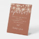 Featuring pretty string lights, this elegant script terracotta open bar sign is perfect for all celebrations. Designed by Thisisnotme©