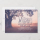 Rustic enchanted nature wedding invitation with string of lights hanging on the branches of the old tree.