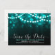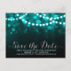 Elegant shining string lights on romantic turquoise bokeh background Save the date card. This beautiful modern looking bokeh lights design is available in many different colours and you can request any colour of this design by email. Or contact me for any support in design customisation. Matching products available