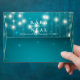 Elegant Vintage String Lights with Turquoise Blue Glitter Sparkle Background Wedding 5x7 Envelope.