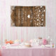 Beautiful rustic barn wood and lace with glowing string lights design for your custom wedding banner