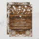 Pretty, rustic design with strings of glowing lights over wood and lace