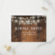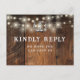 A rustic RSVP card featuring string lights, horseshoes and stylish typography on a barn wood background. The reverse features your details and a fun guest song request. Designed by Thisisnotme©