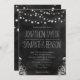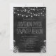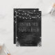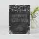 String of Lights Chalkboard © Sunny Mars Designs. Stylish, modern, elegant, classy, trendy, chic customisable formal or cute casual 5" x 7" wedding invitations with a beautiful black chalkboard design featuring bulbs of rope or string lights hanging above with a floral tropical design below.