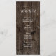 String of lights and vintage banner on old wood summer wedding menu card featuring a white banner with brown outline on old brown wood background. This modern and trendy wooden wedding design with vintage elements is part of a wedding set or collection, is fully customisable and is perfect for an outdoor summer night barn western rustic wedding. Note that there is not real wood just printed images.