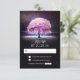 Rustic wedding RSVP card with old oak tree and purple string lights.