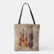 Artsy String Quartet on Antique Music Background - Instruments of a string quartet on a brown toned background of musical notes.