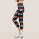 Capri leggings for women with retro red and blue stripes in a style that is both modern and retro.