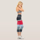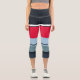 Beautiful and Modern Geometric Striped Capri Leggings for Women's Day in Blue, Red, Grey and White.