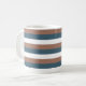 Do you like pretty mugs? This mug has a pattern of brown, teal and white stripes.