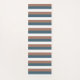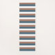 Do you like pattern yoga mats? This yoga mat has a pattern of mocha brown, teal and white stripes.