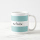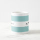 This mug can be personalised with a name on both sides for lefties or righties and features a modern graphic stripe pattern in aqua and white.