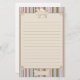 Very trendy Beagle stationery is brown, pink, and blue. A hound silhouette is at the top, and a dog bone at the bottom. The four corners of the lined section are in place with paw prints. Cute dog lover stationery for all your letters!