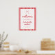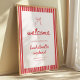 Striped Bow Coquette Bachelorette Weekend Welcome Poster Print. Designed with red and white stripes and script lettering, personalize this girly and trendy bachelorette wedding welcome sign with the bride's name, your bachelorette weekend dates, and location below.
