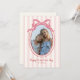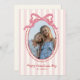 A charming Valentine’s Day photo card featuring soft pink stripes and a bold, bright pink bow framing your favorite picture. The whimsical scalloped oval frame adds a sweet, playful touch, making it perfect for family photos, kids’ portraits, or a cute snapshot of you and your loved one. A fun and feminine design that’s easy to personalize for a heartfelt holiday greeting.