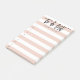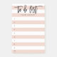 Chic yet whimsical striped post-it notes in millennial blush pink and white feature "to do list" at the top in trendy brush lettered typography and your name or monogram beneath, with numbered lines 1-10 to keep track of all your most important tasks.
