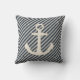 Striped Burlap Look Nautical Ship's Anchor Pillow