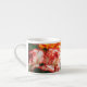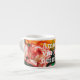 Botanical themed warm coloured Espresso Cup featuring a photo of colourful bunch of flowers: orange gerbera and striped white red carnations symbolising devotion, love and fascination. Glamourous romantic design. Stylish gift for any special occasion (Saint Valentine's Day, Mother's day, Grandparents Day, birthday), vibrant accent to your kitchen. You can delete the text "Amor vincit omnia" (Love conquers all) or replace it with your own message (click "Personalise this template").