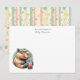 This pastel nursery note card features a funny capybara with bubble tea on a soft dotted stripe background in cream, green, orange and yellow. The playful design makes it a perfect personalised stationery piece.