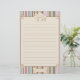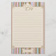 Very trendy German Shepherd stationery is brown, pink, and blue. The canine silhouette is at the top, and a dog bone at the bottom. The four corners of the lined section are in place with paw prints. Cute dog lover stationery for all your letters!