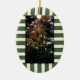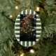 Striped Green And Cream Bordered Fall Trees And Forest Ornament by Kristie Hubler, with fabric frame border, scanned, and a photo of fall leaves turned on trees in a forest