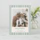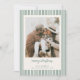 This clean and modern Christmas template features classic green vertical stripes framing a large photo space for a fresh, festive look. A handwritten “merry christmas” greeting sits beneath the image, paired with elegant serif text for names and the year to create a timeless, personalized touch. The coordinating back design includes an additional photo area and customizable message space, giving you room to share more holiday joy. Simple, stylish, and easy to personalize, this layout is perfect for anyone wanting a warm and modern Christmas card with extra room for memories.