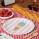 Add a scoop of fun to your celebration with these cheerful Striped Ice Cream Cone Paper Plates. Featuring bold pink‑and‑white stripes and a whimsical triple‑scoop ice cream cone illustration, this design brings instant sweetness to any party. The bright, candy‑shop aesthetic makes these plates perfect for ice cream socials, summer birthdays, dessert bars, kids’ parties, or any event with a fun, nostalgic theme.