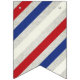 This red and white and blue banner bunting is patterned with diagonal stripes. Nice background for patriotic holidays or nautical decor. 16 flags for you to add letters or text, if desired. Your choice of triangle or swallowtail shape.
