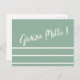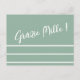 Grazie Mille! Italian Thank you postcard with pretty white typography and white stripes on a muted tone background in your choice of lovely colours.
