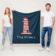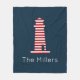 Striped Lighthouse Nautical Red White Blue NAME Fleece Blanket