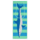 A wine "shark" glossy bag striped in those alluring colours of Caribbean waters, ready to pop a bottle in. The Mako shark illustration is by dagdart.