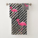 STRIPED MARBLE FLAMINGO BATHROOM TOWEL SET