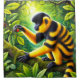 This shower curtain has a unique striped monkey on it.