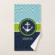 Green, Teal, Navy Blue and White Striped, Anchor Design.