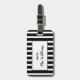 This black and white luggage tag is decorated with more Mrs. written on the front, on a striped background, making it perfect for the new bride's honeymoon. Check out the coordinating Mr. and Mrs. luggage tags.