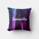 This neon striped modern throw pillow features bright colours of pink and purple. Along with black, these neon colours form vertical lines on both the front and back of this pillow. This pillow will add a splash of colour to your baby's nursery, your living room, or any room for a hint of contemporary style. Quickly and easily personalise the name that appears on the front or delete if you desire.