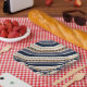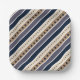 Striped pattern design paper plate in grey, dark blue and beige colours with dots