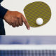 Striped pattern in chocolate brown and olive green ping pong paddle