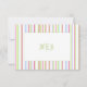 A striped pattern of spring colours overlaid with a framed white layer to hold your monogram, initials, names or date. Use it as stationery, send it as a thank you, or as an invitation. It can also be printed in the 5x7 size.