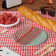 Striped Red and Green Pattern Paper Plate