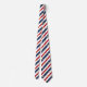 An elegant diagonal red white and blue striped, silver star spangled 4th of July Independence Day neck tie.