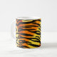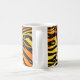 This trendy mug features a striped tiger print pattern with black animal stripes on a very bright orange, yellow and cream fur background. Bring out the wild cat in you with this cool feline design. It's the perfect bold, original look for animal lovers. Check our shop for matching items.