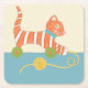 Striped Toy Cat with Ball of String Square Paper Coaster
