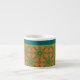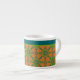 A chic little Espresso Coffee Mug to personalise, with a pattern of stylised Green Flowers, outlined in Navy Blue, on a Rusty Red Background, teamed with a matching striped pattern. Part of the Posh & Painterly "Jungle Drums" collection.