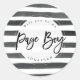 A black and white striped sticker with editable text and "page boy" typography. Easy to change or delete the text fields available to suit your personal requirements. Please visit my shop to find matching items in this collection such as proposal cards, thank you etc.