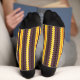 Stylish striped socks with a vibrant yellow, orange, and brown zigzag pattern. Perfect for adding a retro vibe to your outfit. Comfortable and trendy design for all-day wear.